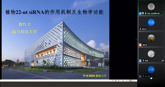 11月6日上午,南方科技大学-北京大学植物与食品研究所所长、生物系讲席教授郭红卫应邀为新葡官网师生作了题为“植物22-nt siRNA的作用机制及生物学功能”的线上学术讲座。本次讲座由3003新葡官方网站姚瑞枫教授主持,3003新葡官方网站、隆平分院师生近两百人(其中本科生六十余人)共享了一场精彩纷呈的学术盛宴。