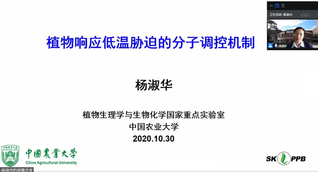 天气渐冷,冬衣上身,那么植物又如何响应低温呢?10月30日上午,中国农业大学植物生理学与生物化学国家重点实验室主任杨淑华教授应新葡官网邀请,以《植物响应低温胁迫的分子调控机制》为主题,为学校师生作了一场精彩的线上学术报告。该报告由姚瑞枫教授主持,新葡官网3003新葡官方网站、隆平分院的与会师生逾百人。