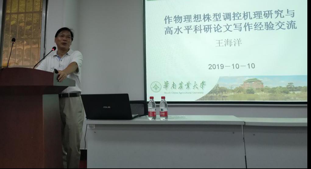 10月10日,中国农科院生物技术研究所玉米功能基因组创新团队首席科学家,华南农业大学生命科学学院王海洋教授应邀到新葡官网3003新葡官方网站进行学术交流,并以《作物理想株型调控机理研究与高水平科研论文写作经验交流》为题给广大师生呈现了一场精彩的学术讲座。本次讲座由刘选明教授主持,学院近百名师生参加了此次学术交流。