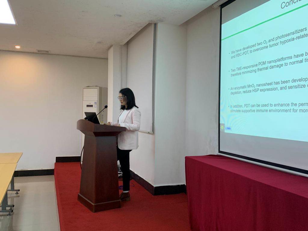 唐玮博士首先介绍了基于纳米医药的光声诊疗的背景,以及她及她本人所在的研究组在光动力疗法(PDT)和光热疗法(PTT)的应用。而后详细介绍了她最近几年的工作成果。通过设计一系列金属、无机化合物、有机聚合物、以及蛋白质等纳米粒子平台。着重研究了其在肿瘤光声成像,包括解决了光动态治疗对肿瘤内部氧气浓度的依赖,光热治疗中过度加热对病灶周围正常组织的损伤等问题。并设计了通过光动态治疗对肿瘤微环境的精准调控,达到与药物及免疫反应的协同治疗策略。