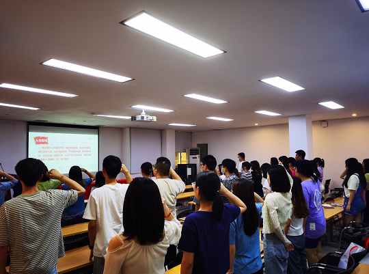 党课开始前,全体党员肃立,由邹志成副书记领誓,全体毕业生党员重温了入党誓词。