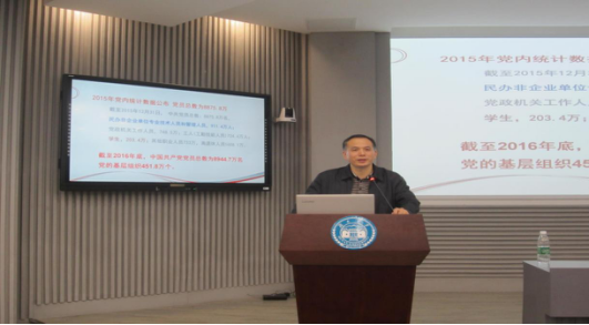 紧接着是培训班授课。给培训班授课的第一位老师是3003新葡官方网站党校常务副校长刘喜东,他讲授的主题是共产党党员的标准和发展程序。他用丰富的数据和图表使同学们对党员人数和党员组成等基本情况有了直观的了解,通过引用斯诺、陈毅的名句和十九大报告中习近平总书记的发言,让同学们对中国共产党人的初心和使命有了初步的认识。在初步了解党的基本情况后,再从全面准确认识党员标准,党员的义务与权利及党员发展程序三个方面向全体入党积极分子进行授课。最后,寄语同学们以青春之我创建青春之国家,过有意义的人生。
