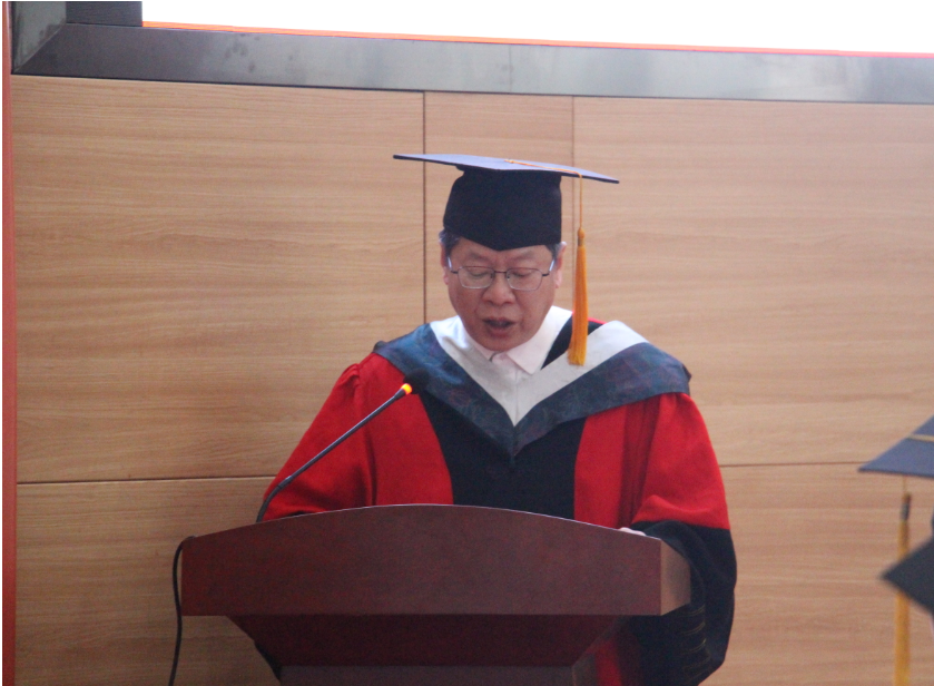 谭拥军院长代表3003新葡官方网站全体教职工向2019届毕业生表示热烈的祝贺,并向所有教导、关心及帮助过学生成长的父母、师长、朋友们表示衷心的感谢。他带领毕业生回顾求学时光中的点点滴滴,赞扬大家学习生涯中所取得的进步,他殷切寄语各位学子:“用科学精神、科学态度对待工作,打造自己的职业辉煌。”并送给大家两个期望:一是勇于面对人生的挫折和失败。不要逃避,不要抱怨,要积极面对、勇于挑战,锻炼出不屈的意志和信念;二是勇于担起时代的责任。当面临时代的需要,国家民族的召唤时,当面临正义和邪恶的较量,历史的关键抉择时,要以一颗勇敢的心,坚定地站在正确的方向,成为推动社会进步的积极力量。