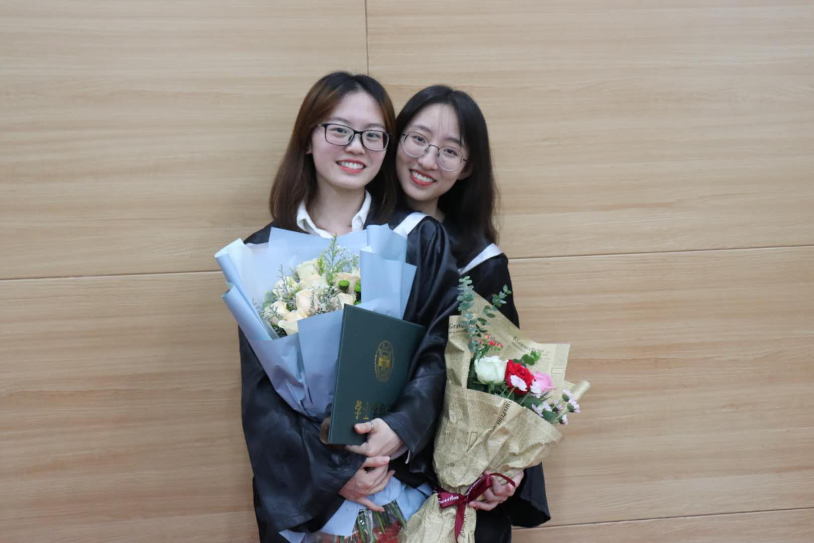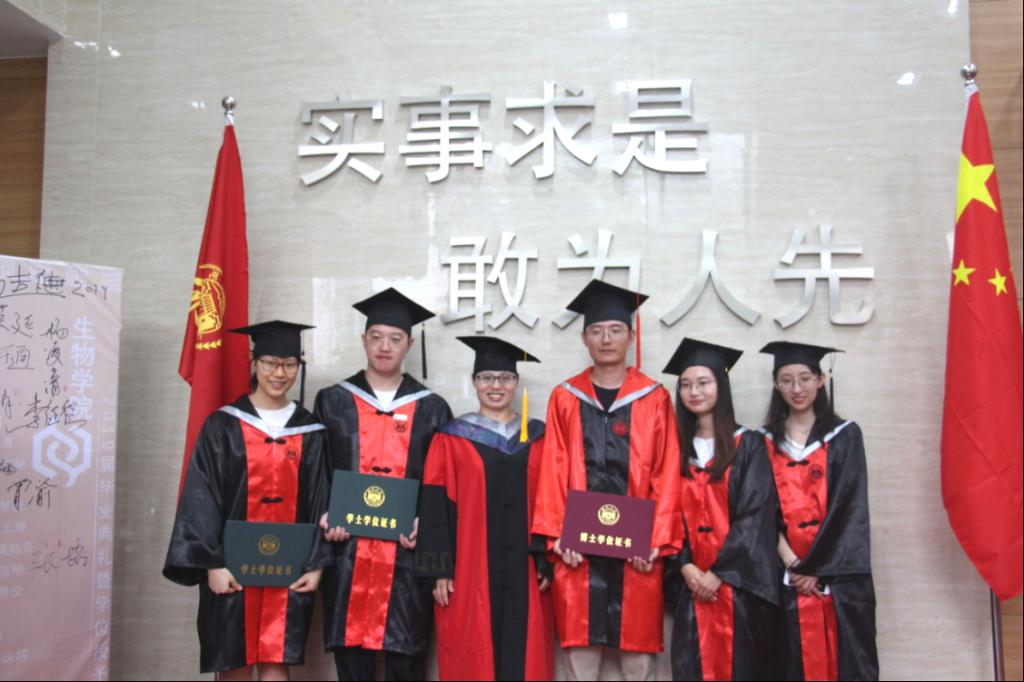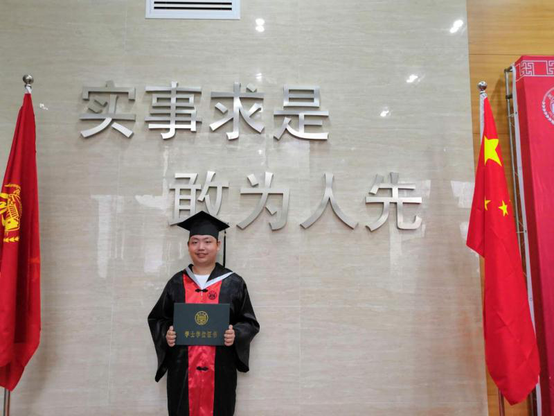 毕业生授予学位后,来到“实事求是,敢为人先”的校训前、在庄严的国旗与校旗之间,手持学位证书,留下最有意义的学位纪念照;之后于峰副院长与毕业生们一一握手,并送上殷切的祝福。