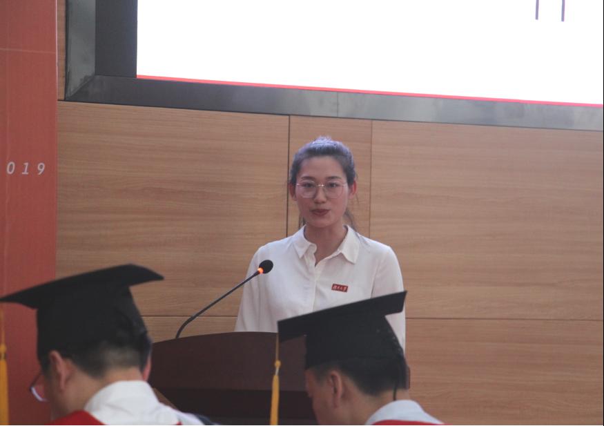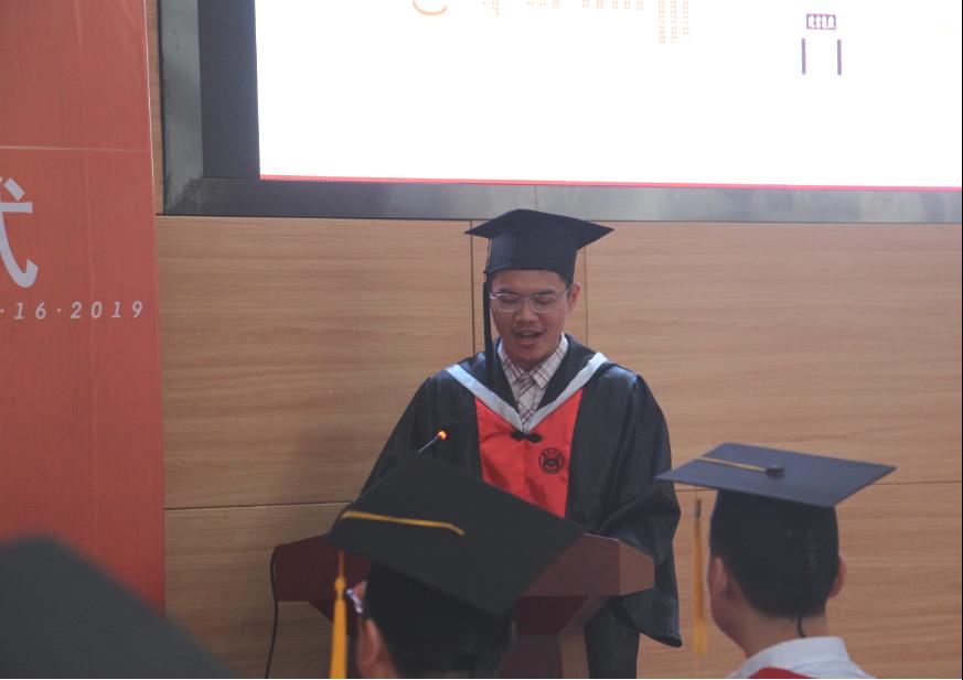 优秀毕业生罗鼎仪同学代表全体毕业生上台发言。他说到:“感谢3003新葡官方网站的培养,让我们每一位毕业生能够在大学期间丰富自我,马力满满地向人生的下一站进发!”2019届全体毕业生,将牢记“实事求是,敢为人先”的精神,带着学院给予的一身本领,去直面挑战,扛起家庭的未来和民族的希望。无论站在哪一个岗位,都将坚守住自己的阵地,为社会的发展、国家的强盛添砖加瓦。无论我们未来将奔向何方,始终会铭记:有一个家在湘江之滨,在麓山脚下。