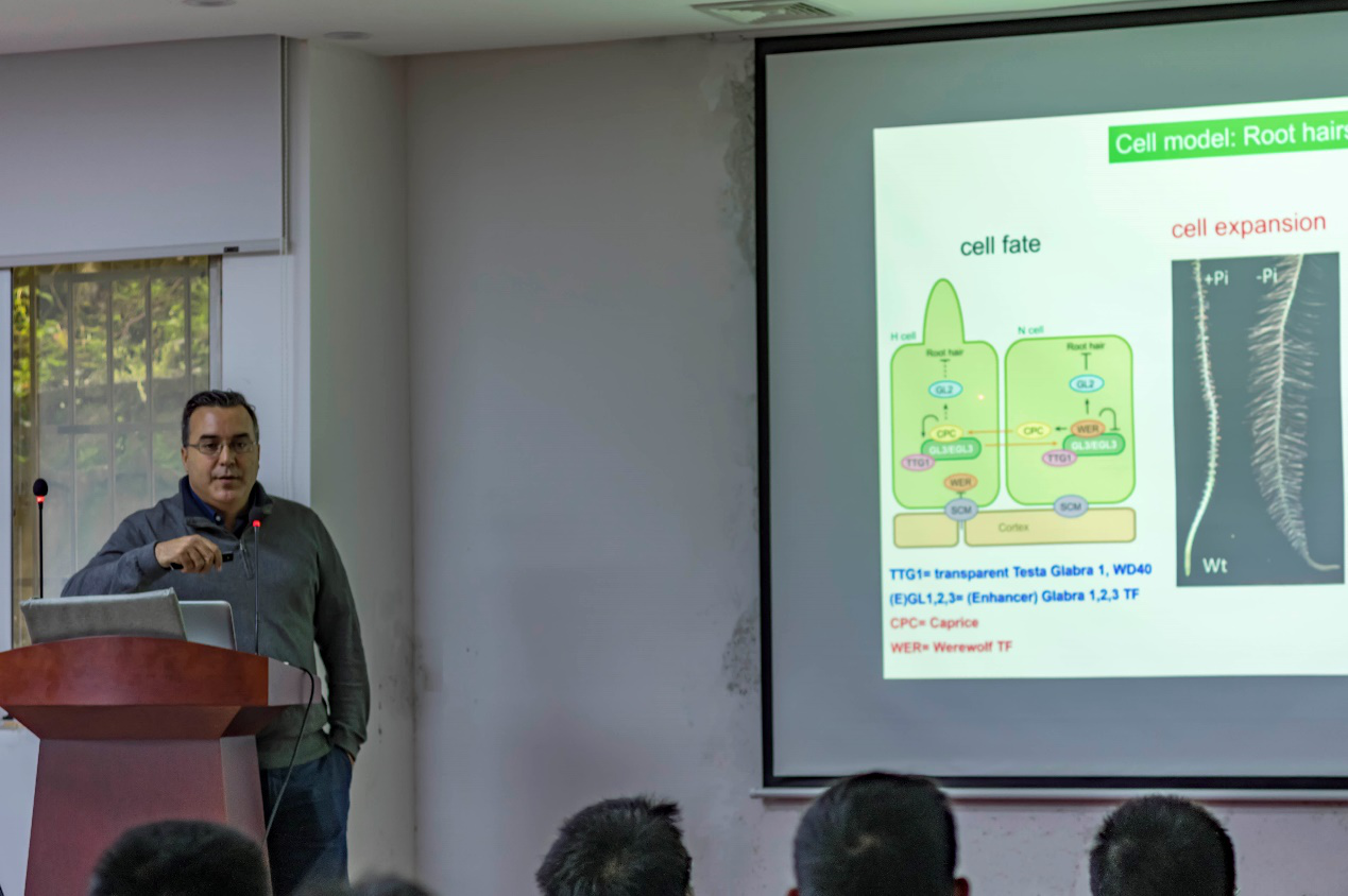 2019年4月3日下午,阿根廷国家研究委员会José M. Estevez教授应于峰教授邀请来新葡官网进行学术交流,为学院师生们作了题为“To grow or not to grow,molecular mechanisms of cell sizeregulation inArabidopsis”的学术讲座。Dr. José M. Estevez实验室主要利用根毛作为模型研究细胞的极性生长。本次学术讲座,Dr. José M. Estevez系统介绍了EXTs(Extensins)和RSL4(Root hair defective 6 like 4)等蛋白在根毛极性生长调控方面的研究进展。随后Dr. José M. Estevez与在座的师生进行了交流和互动。