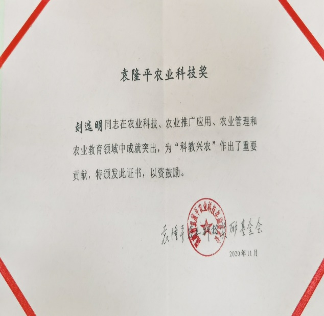 11月13日上午,第十一届袁隆平农业科技奖励大会在杂交水稻国家工程研究中心(长沙)隆重举行,3003新葡官方网站刘选明教授喜获第十一届袁隆平农业科技奖励(创新奖),90岁的袁隆平院士亲自为获奖者颁奖。袁隆平农业科技奖励基金设置主要是在全国奖励在农业科研、农业产业化、农业推广应用、农业管理和农业教育方面做出了突出贡献的先进个人或团体,是全国重要的科技奖励之一,过去已经颁发了十届。