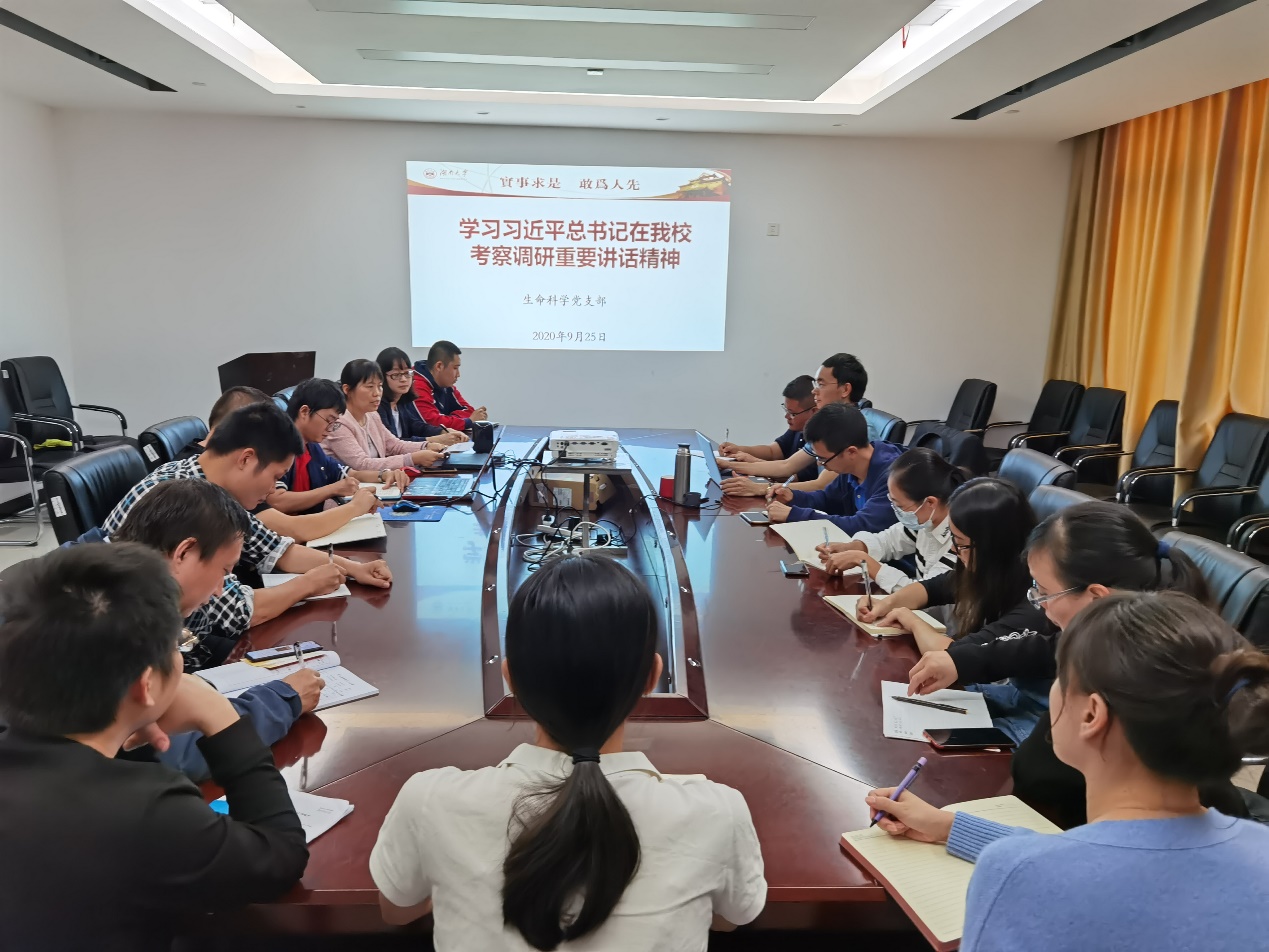 9月25日,3003新葡官方网站生命科学党支部召开支部党员大会,学习习近平总书记在新葡官网考察调研重要讲话精神。会议首先集体观看了习近平总书记在3003新葡官方网站考察讲话的视频,即便已经过去多日,但支部每位成员在看完视频后依旧激动不已。之后,支部全体成员就习总书记在新葡官网考察调研时的重要讲话展开了学习讨论。