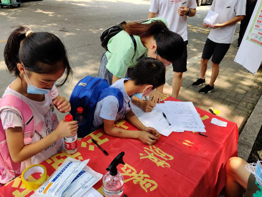 8月27日,志愿团队员在经过组织安排后首先来到岳麓区科教新村社区进行防疫宣传活动。首先,志愿团队员向社区居民普及了新型冠状病毒的基本知识以及具体防护措施,并且为社区居民发放口罩、消毒液等物资。