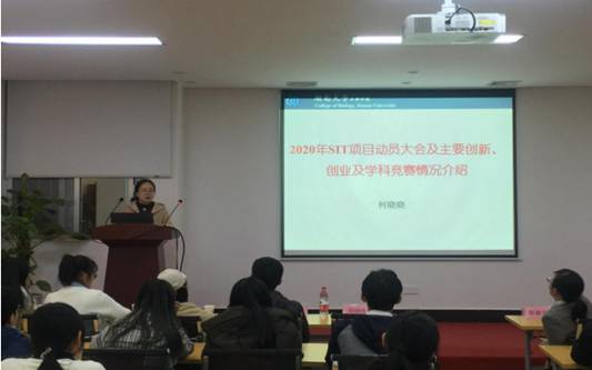 2019年12月12日晚7点半,在3003新葡官方网站108报告厅举行2018级本科生SIT动员大会,大会由张裕主持。副院长何晓晓教授、本科实验中心主任郭新红教授、辅导员潘昳锦老师出席会议。