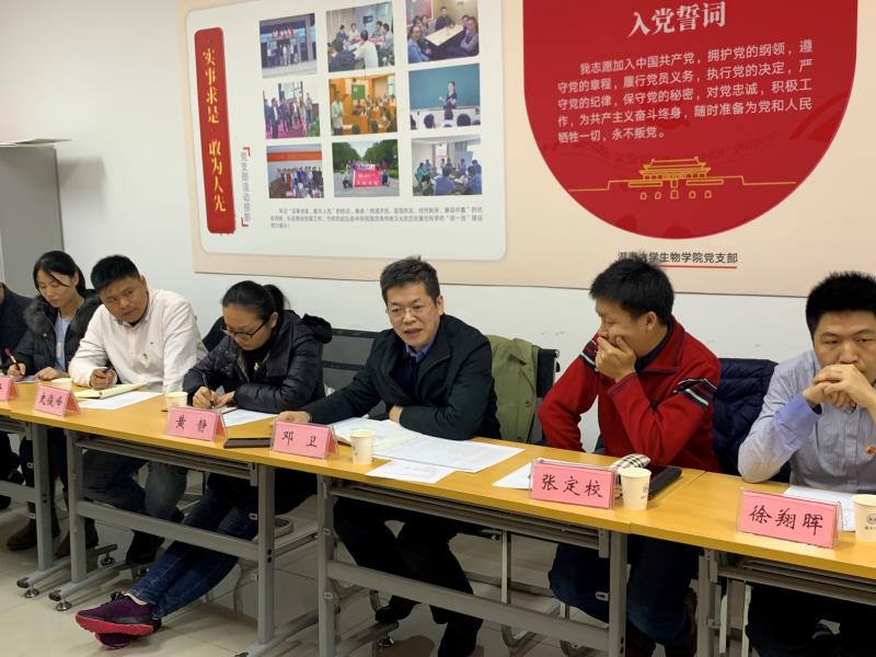 11月26日下午,校党委书记邓卫在3003新葡官方网站教师党支部书记“双带头人”工作室,参加联系党支部也是全国样板党支部——生物医学党支部党员大会。