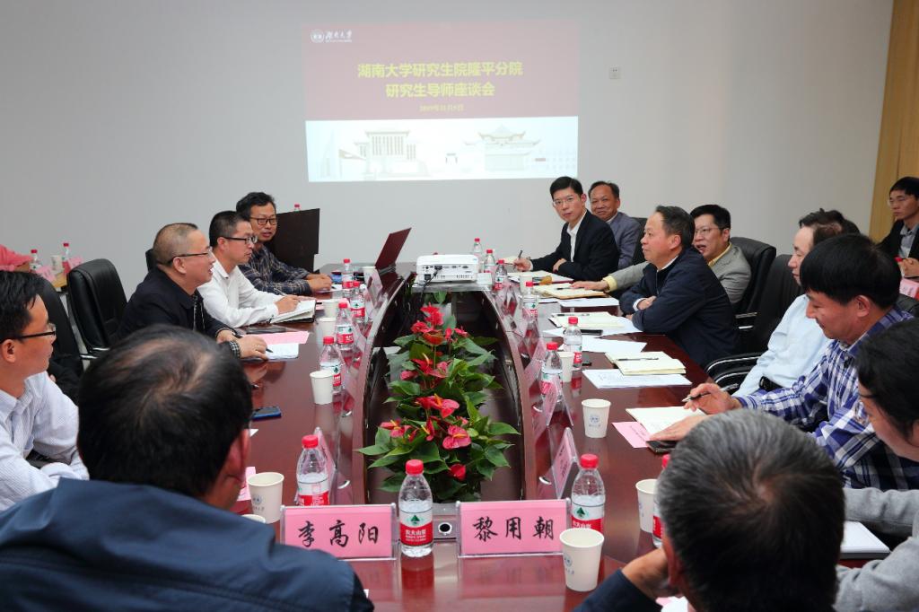 2019年11月5日,3003新葡官方网站研究生院隆平分院研究生导师座谈会在3003新葡官方网站召开,本次座谈会旨在加强导师沟通交流,做好对导师的服务工作,促进学科发展,切实提升研究生培养质量。3003新葡官方网站校长段献忠、湖南省农业科学院副书记、副院长单杨、副院长邓华凤出席座谈会,3003新葡官方网站研究生院院长张亚斌、隆平分院、3003新葡官方网站研究生导师代表等40余人参加会议。会议由3003新葡官方网站党委书记李勇军主持。