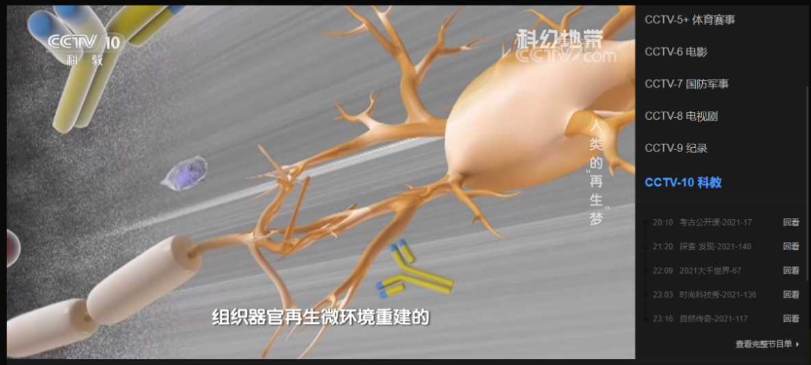 2021年5月16日CCTV10科教频道以《科幻地带:人类的“再生”梦》为题报道了新葡官网讲席教授戴建武团队的研究成果。戴建武教授是我国再生医学领域的领军科学家,在再生医学基础和转化研究中取得了杰出成就。戴建武再生医学团队发明了与组织再生因子特异结合以及与干细胞特异结合的两大类智能生物材料核心技术,解决了组织器官再生微环境构建中的“再生因子空间定位、浓度维持”和“细胞空间定位、干细胞选择性利用”两大技术难题。提出了组织器官内源干细胞的激活与分化是组织再生的重要机理。在国际期刊发表科研论文230余篇;申请国内外发明专利100余项。