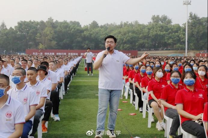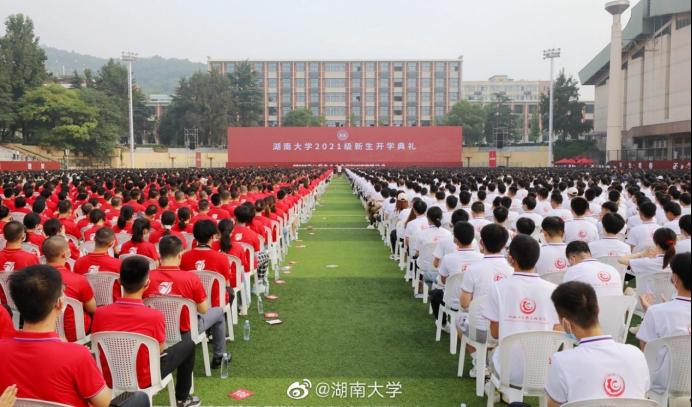 开学典礼给我最大的感触就是看到了湖大的活力,看学长学姐们主持、唱歌,很有激情,让我对以后的大学生活更加期待了。