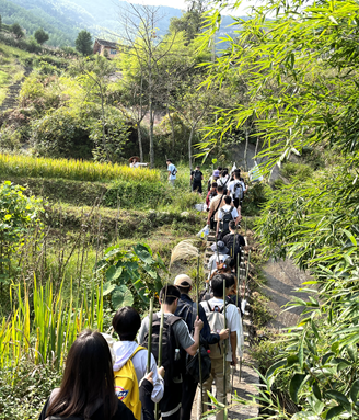 在两天的生产劳动中,同学们积极参与水稻收割、植物扎染、“神仙豆腐”制作等劳动实践。金秋的梯田美如画,同学们脱掉鞋袜、挽起袖子、拾起镰刀、弯腰割禾、甩禾脱粒、装袋上田畔。看着一粒粒饱满稻谷从稻秆中脱落进入戽桶,虽然汗如雨下,但同学们的脸庞洋溢着收获的喜悦。