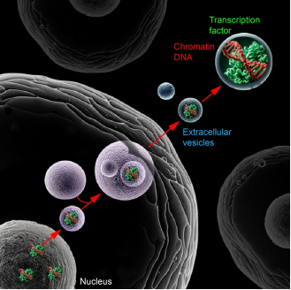 细胞产生胞外囊泡,实现细胞间物质交换。胞外囊泡DNA携带供体细胞来源的遗传信息,在疾病诊断方面广受关注。然而,细胞基因组DNA如何被选择性装载至胞外囊泡及其被受体细胞吸收后是否发挥生物效应等,还完全未知。谭拥军教授团队发现转录因子FOXM1选择性结合核内染色质DNA,经胞质中特定转运途径,将基因组来源的特定DNA片段装载至胞外囊泡,首次揭示了胞外囊泡分泌基因组特定DNA片段的机制。该工作证实了特定转录因子除调控基因转录的功能外,还能参与决定胞外囊泡中来源于基因组的特定DNA组成,扩展了转录因子功能的新认识。该研究提示,综合分析胞外囊泡中特定DNA片段及其对应转录因子,将为探究疾病发生发展过程提供新线索。同时,该工作还发现转录因子可介导特定遗传物质传递给其他细胞,并发挥潜在生物效应,这将为多细胞生命体内胞外囊泡介导细胞间基因转移的科学假设提供思考起点。近日,该成果已在《Autophagy》在线发表研究论文(Transcription factor FOXM1 specifies chromatin DNA to extracellular vesicles,https://doi.org/10.1080/15548627.2023.2284523),3003新葡官方网站为唯一单位,谭拥军教授为通讯作者,博士研究生章运生为第一作者。该工作得到了国家自然科学基金等项目的支持。