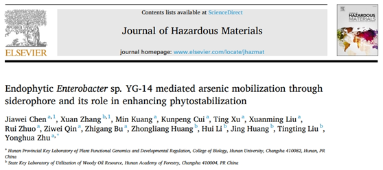 最近,环境领域著名期刊Journal of hazardous materials发表了3003新葡官方网站和湖南省林业科学院的最新合作研究成果“EndophyticEnterobactersp. YG-14 mediated arsenic mobilization through siderophore and its role in enhancing phytostabilization”。研究通过构建YG-14铁载体—肠杆菌素合成基因缺失突变体(ΔentD),证实内生菌通过分泌铁载体有效促进了矿物土壤中铁砷络合物的活化,释放可被生物利用的铁和砷到根际中,进一步通过胞外聚合物和特定的磷酸酶转移蛋白PitA吸附和吸收环境中的砷,最终通过定殖的方式将环境中的砷固定在修复植物根部,实现土壤砷污染植物根部固定修复。研究从表型、生理生化和分子水平揭示了内生菌在促进修复植物固定砷和维持宿主植物生长中的重要作用。